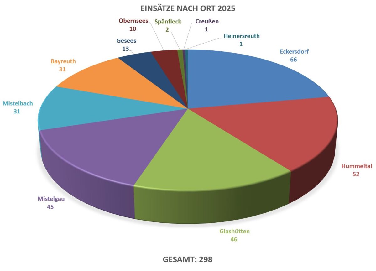 Unser Kerneinsatzgebiet umfasst die Gemeinden Eckersdorf, Glashütten, Hummeltal, Mistelbach, Mistelgau und Obernsees. Wir werden allerdings auch – abhängig vom jeweiligen Standort unseres Fahrzeugs – zu Einsätzen außerhalb dieses Kernbereichs gerufen, beispielsweise in Bayreuth, im Bereich Heinersreuth oder dem Ahorntal.